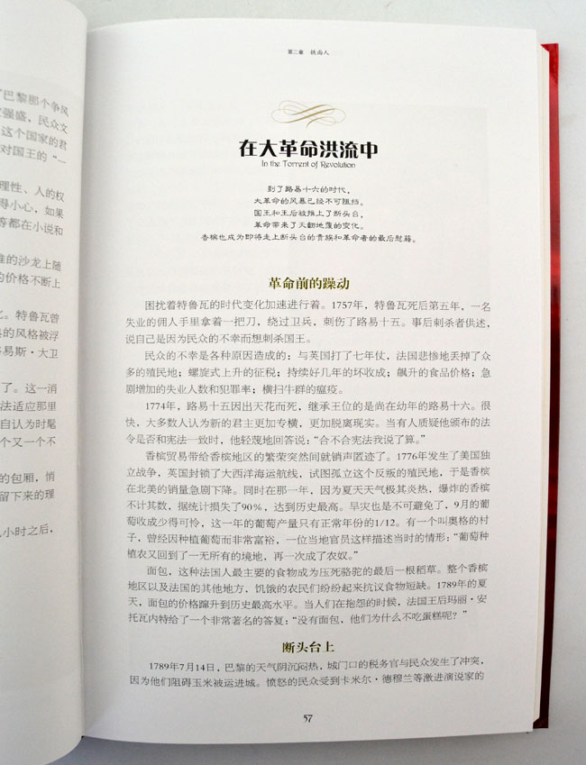 《香槟:飞腾人间300年》的目的,并不仅仅在于介绍如何品味香槟,说明酿造香槟的技巧,而更在于表达某种敬意--向在艰难的环境中受尽了千年以来的入侵者的凌辱、绎历了一个又一个不幸,却最终酿造出世界上最令人兴奋的起泡葡萄酒的那群人致敬。于是,一位位非凡人物在香槟的编年史中来来去去、轮番登场佩早侬修士、路易十四、安托瓦内特王后、拿破仑·波拿巴和他的侄子、波马利夫人、香槟杏理、酩悦父子……