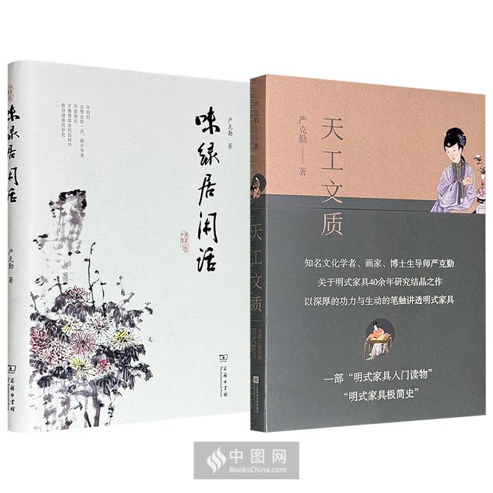 著名画家严克勤文集2种任选:《味绿居闲话》/《天工文质:明式家具美器之道说略》,彩色印刷,一部是关于书画、音乐、园林、戏曲等“闲事”的清雅文字,一部是针对明式家具蕴含的文化史、社会史、经济史的轻松解读,分别勾勒出传统生活美学的完整图景